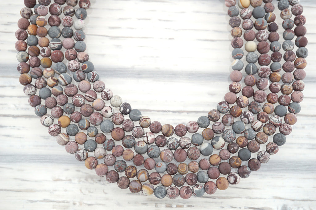 Matte Sonoran Dendrite Rhyolite 6.5-7mm round beads (ETB01158)