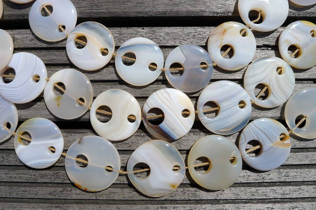 Natural Agate large 33-40mm round two holes beads (ETB00280)