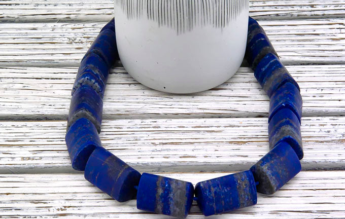 Lapis Lazuli is a relatively rare semi-precious stone that has been prized since antiquity for its intense blue color. In ancient Egypt, lapis lazuli was a favorite stone for amulets and ornaments such as scarabs; it was also used in ancient Mesopotamia by the Sumerians, Akkadians, Assyrians, and Babylonians for seals and jewelry. (wikipedia)