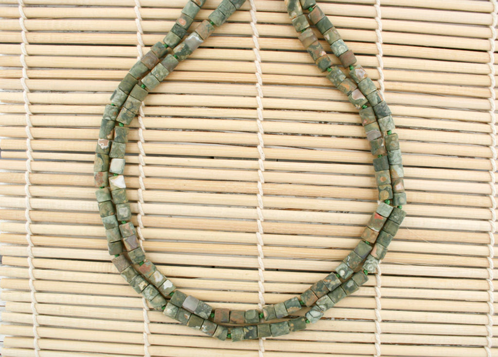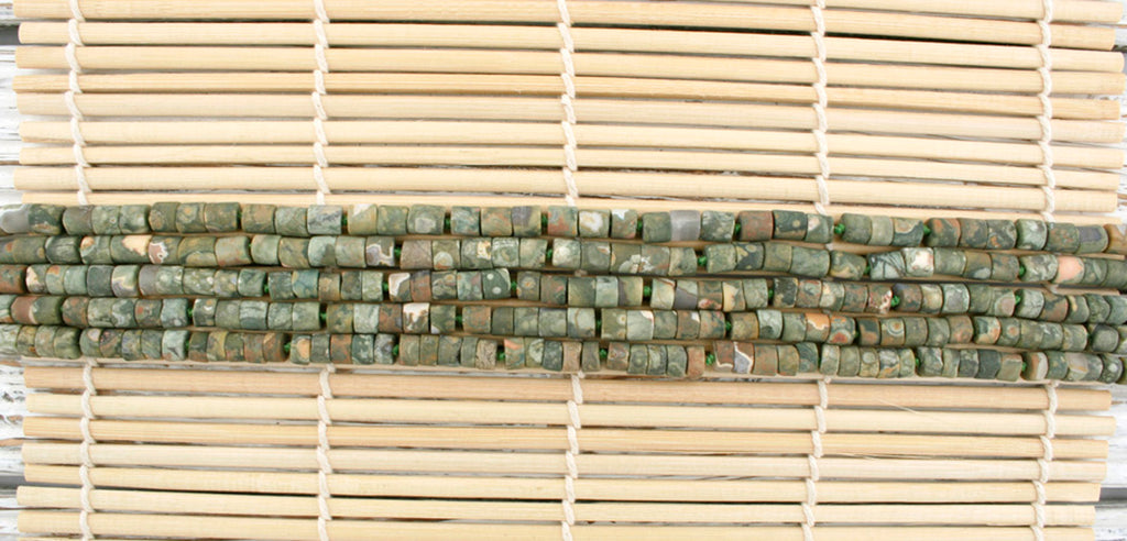 Matte Rainforest Rhyolite 5.5-6mm Thin cylinder beads (ETB01296)