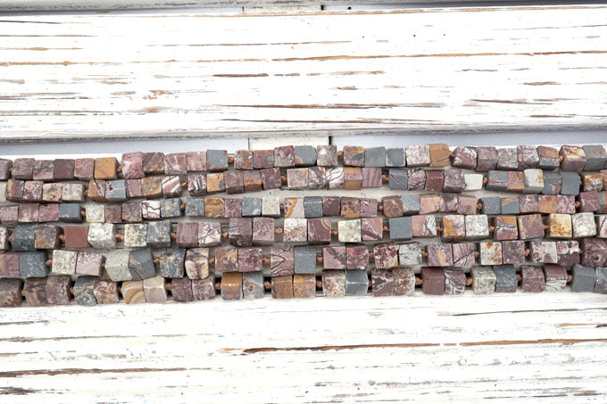 Matte Sonoran Dendrite Rhyolite 5.5-7mm cubic / cube beads (ETB01129)