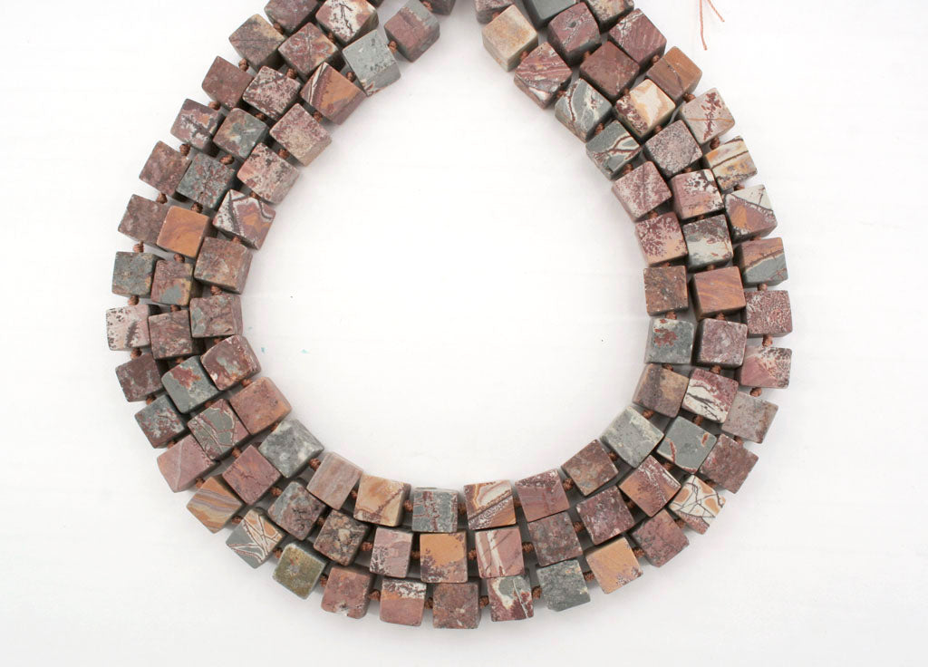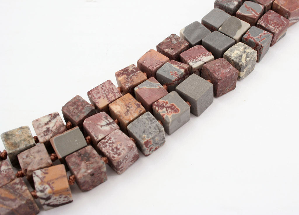 Matte Sonoran Dendrite Rhyolite 8.5-10.5mm cubic / cube beads (ETB01153)