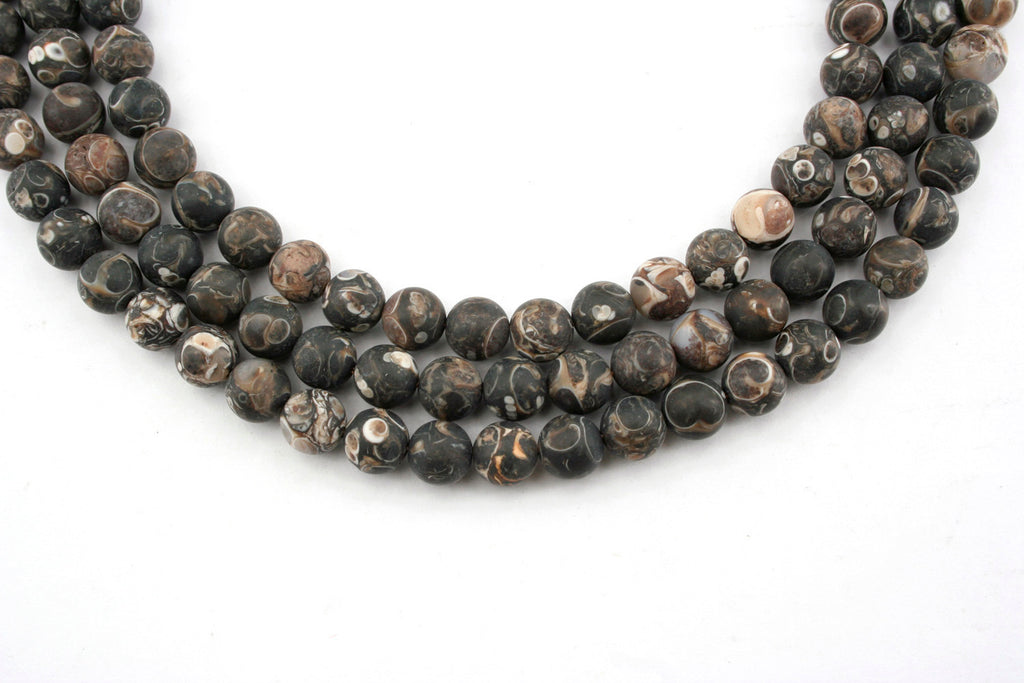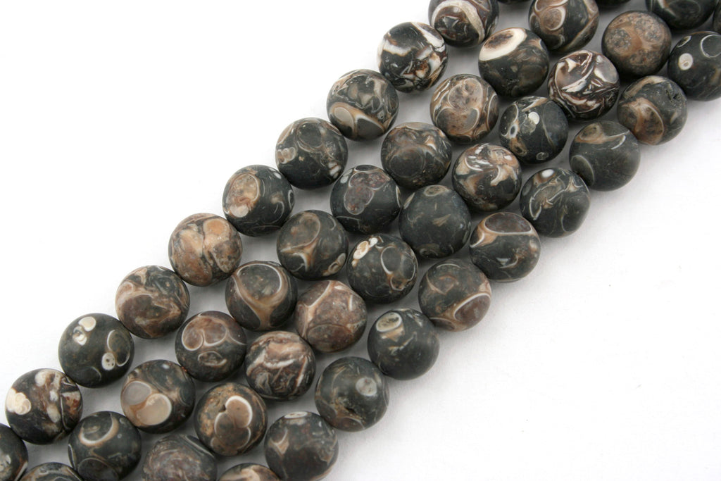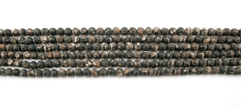 Matte Turritella Agate 7.5-8mm round beads (ETB01316)