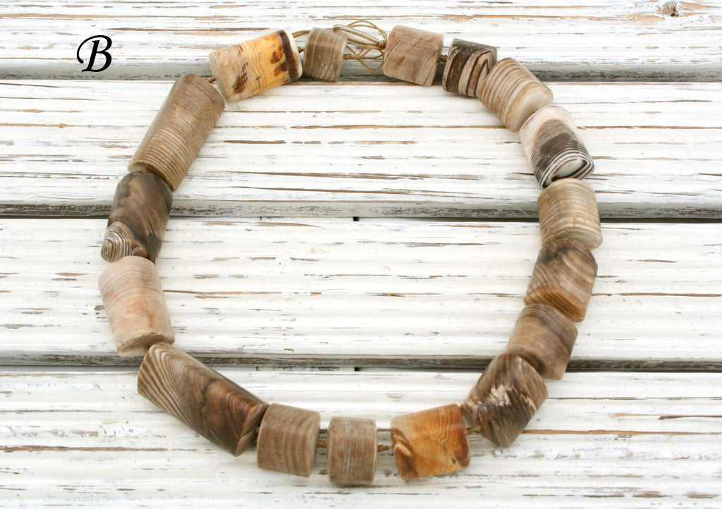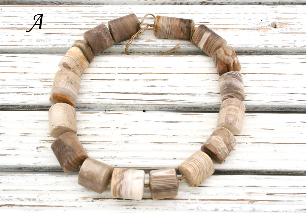 Matte Wood Opalite/ Petrified Wood 19-22mm triangular prism beads (ETB00403)
