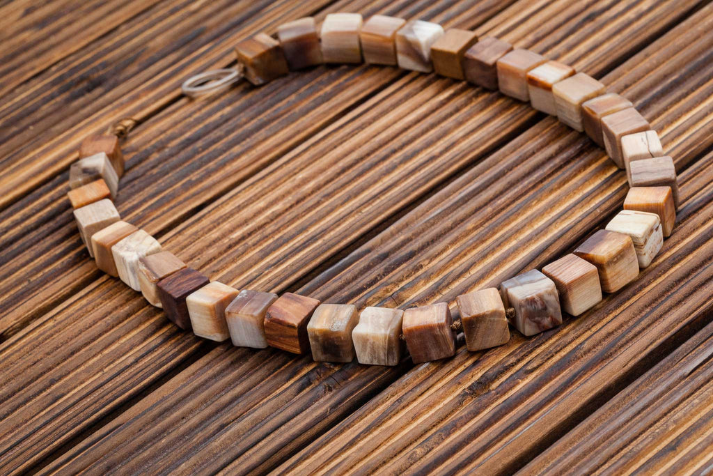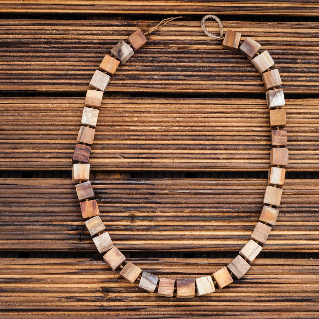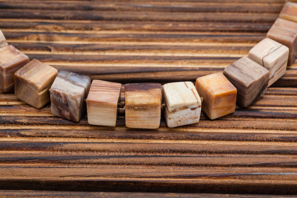 Matte Wood Opalite/ Petrified Wood 8-11mm cube beads (ETB00820)