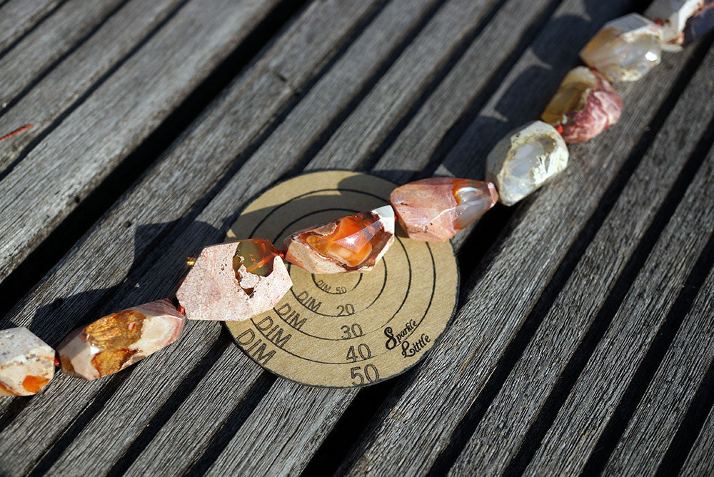These stones are comparable to Australian boulder opal and its origins are similar. These are found as small pockets or seams/veins of opal associated with rhyolite matrix, the host rock, which is softer than the opal. The word cantera refers to the host matrix. Like boulder opal and koroit opal, these stones were not initially as prized as the pure cuts but cutters and buyers of both koroit/boulder and cantera opal came to appreciate the attractiveness of the matrix cut and polished with the opal. Mexican opal often requires a dark background to bring out the colour play and the cantera although in some cases quite light, provides a natural backing to the opal, call it a natural doublet-like effect if you will. The most stunning cantera opals have a pool or "eye" of central opal within the matrix.