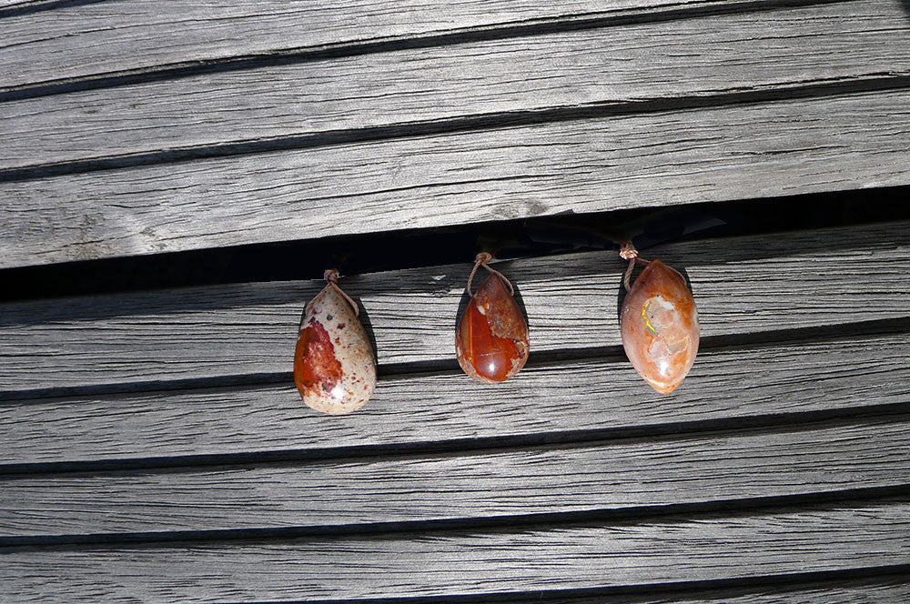 These stones are comparable to Australian boulder opal and its origins are similar. These are found as small pockets or seams/veins of opal associated with rhyolite matrix, the host rock, which is softer than the opal. The word cantera refers to the host matrix. Like boulder opal and koroit opal, these stones were not initially as prized as the pure cuts but cutters and buyers of both koroit/boulder and cantera opal came to appreciate the attractiveness of the matrix cut and polished with the opal. Mexican opal often requires a dark background to bring out the colour play and the cantera although in some cases quite light, provides a natural backing to the opal, call it a natural doublet-like effect if you will. The most stunning cantera opals have a pool or "eye" of central opal within the matrix.