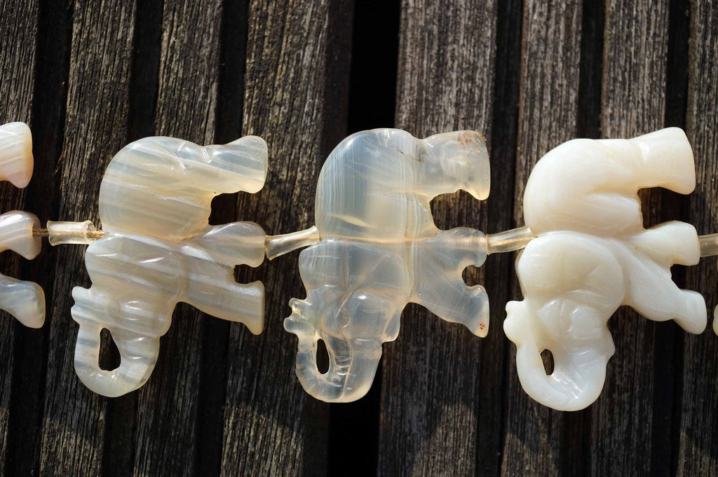 Natural Agate 34-37mm Elephant beads handmade (ETB00291)