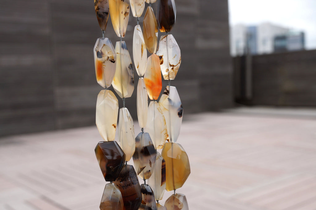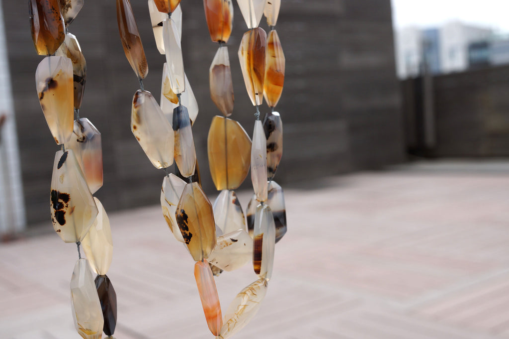 Moss agate (also called mocha stone) is a semi-precious gemstone formed from silicon dioxide. It is a form of chalcedony which includes minerals of a green colour embedded in the stone, forming filaments and other patterns suggestive of moss. It also sometimes resembles blue-cheese.