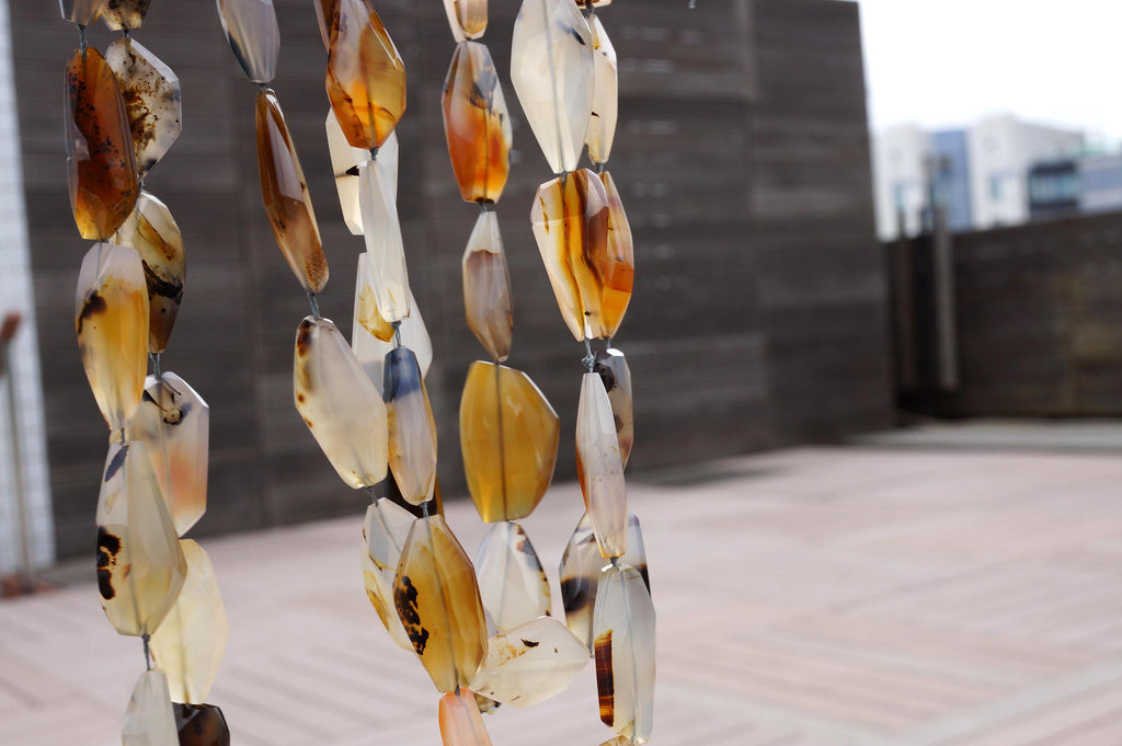 The field is a clear or milky-white quartz, and the included minerals are mainly oxides of manganese or iron. It is not a true form of agate, as it lacks agate's defining feature of concentric banding. Moss agate is of the white variety with green inclusions that resemble moss. It occurs in many locations.
