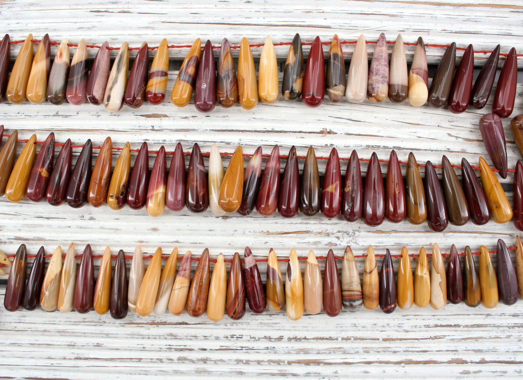 Mookaite is an Australian jasper that combines the lighter colors of yellow and red jasper. It encourages the desire for new experiences and helps to keep a balance between external activities and the internal response to these.