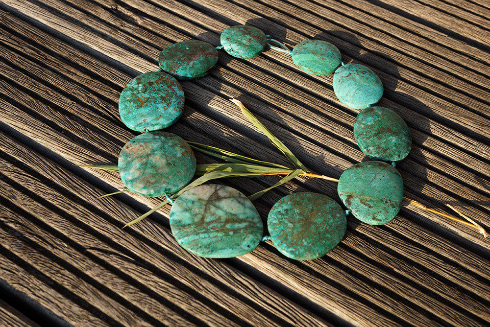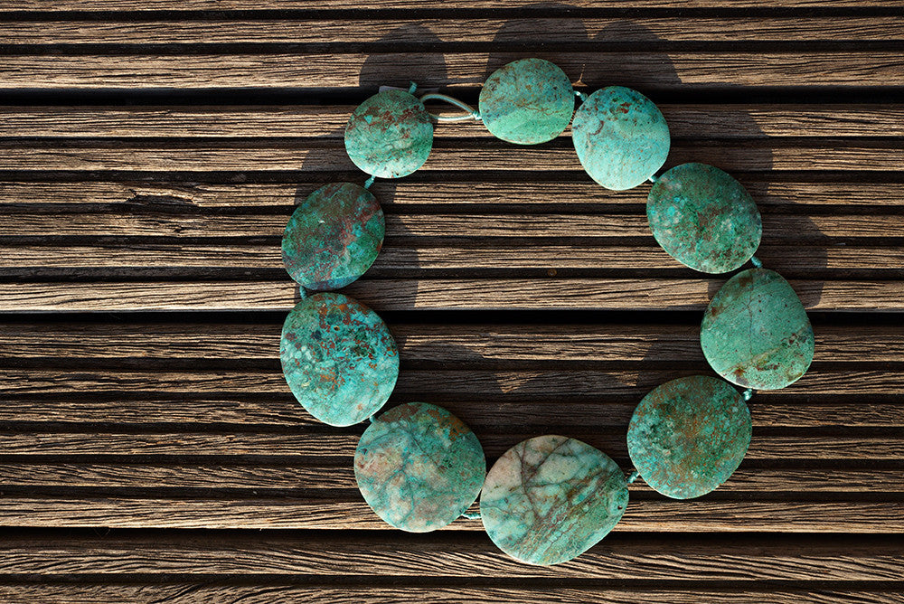 The king of carbonate copper gemstones, is an alluring, vivid blue-green color and is often mistaken for turquoise because they share many visual similarities. It can often be found intermingled with malachite, turquoise and azurite, creating a wonderful mixed gemstone known as eilat stone. Legend has it that eilat stone was originally mined in King Solomon's mines in Africa. The rich, vibrant blue and green colors of chrysocolla are reminiscent of looking down upon the earth's surface from space.