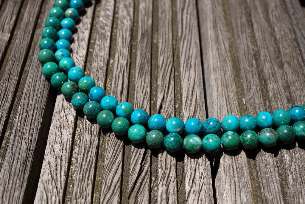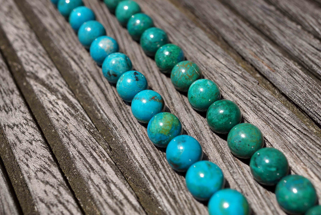 The king of carbonate copper gemstones, is an alluring, vivid blue-green color and is often mistaken for turquoise because they share many visual similarities. It can often be found intermingled with malachite, turquoise and azurite, creating a wonderful mixed gemstone known as eilat stone. Legend has it that eilat stone was originally mined in King Solomon's mines in Africa. The rich, vibrant blue and green colors of chrysocolla are reminiscent of looking down upon the earth's surface from space.