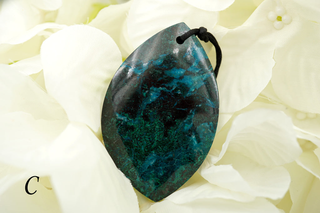 The king of carbonate copper gemstones, is an alluring, vivid blue-green color and is often mistaken for turquoise because they share many visual similarities. It can often be found intermingled with malachite, turquoise and azurite, creating a wonderful mixed gemstone known as eilat stone. Legend has it that eilat stone was originally mined in King Solomon's mines in Africa. The rich, vibrant blue and green colors of chrysocolla are reminiscent of looking down upon the earth's surface from space.