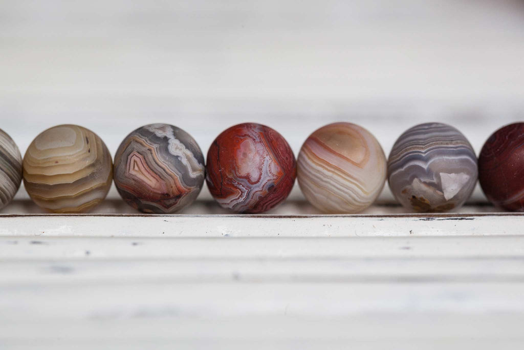 Laguna agate is a fortification agate with beautiful varietal colors. Fortification agate features patterns like a medieval fortress wall. Laguna Lace agate presents both varieties of banding often in the same stone.