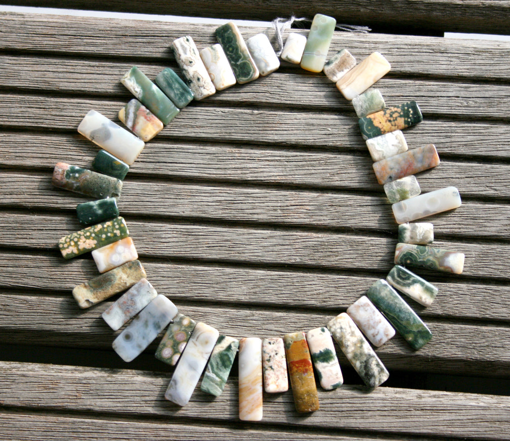 Ocean Jasper (also called Orbicular Jasper) is an unusual jasper found only at a remote location on the coast of Madagascar that can only be mined at low tide! The colors vary widely - including white, green, pink, red, black, blue. The wild polka dots, wavy lines, multi colored floret patterns of Ocean Jasper make this a gorgeous and exciting stone.