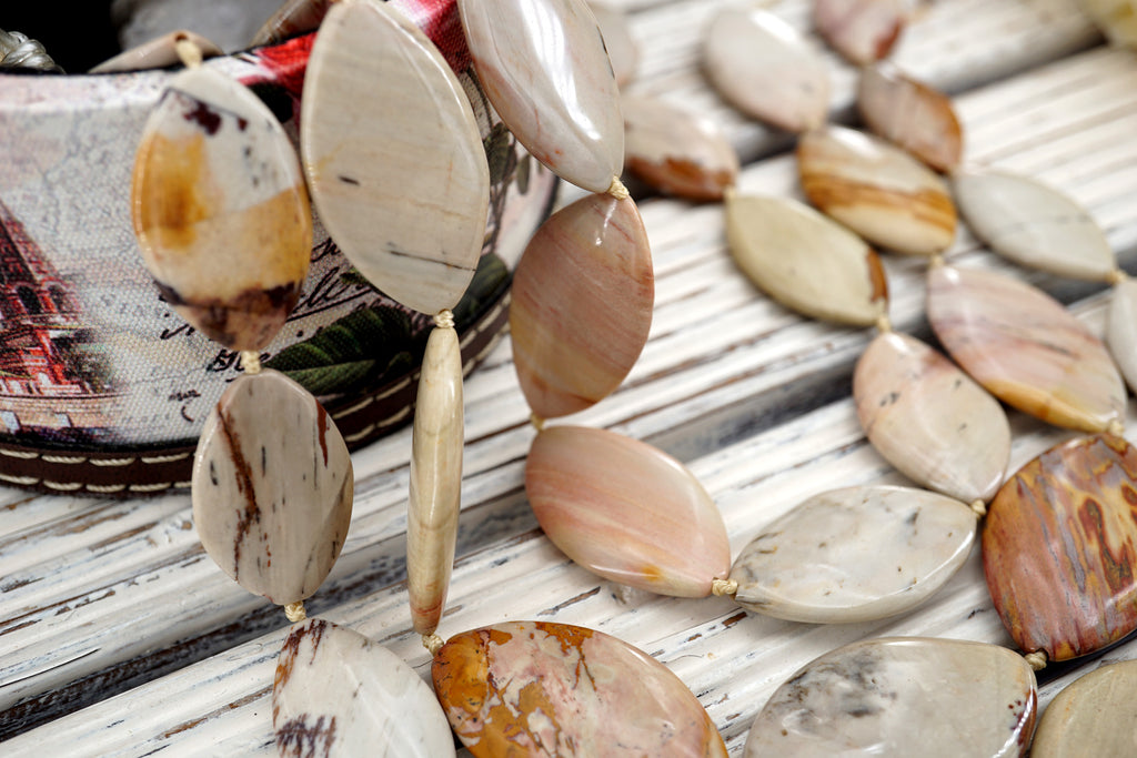 Owyhee Sunset Jasper is known as the “King” of all picture jaspers. It consists of patterns of golds, tans and reds to form beautiful desert scenes in the gemstones.