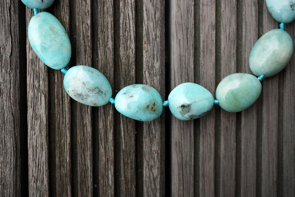It is named appropriately for the Amazon. Its soothing turquoise color energy, like waters deep and ancient, helps temper excesses, restores calm after a storm, relieves stress, and neutralizes extremes. It is a Stone of Harmony, both within the self and among people.