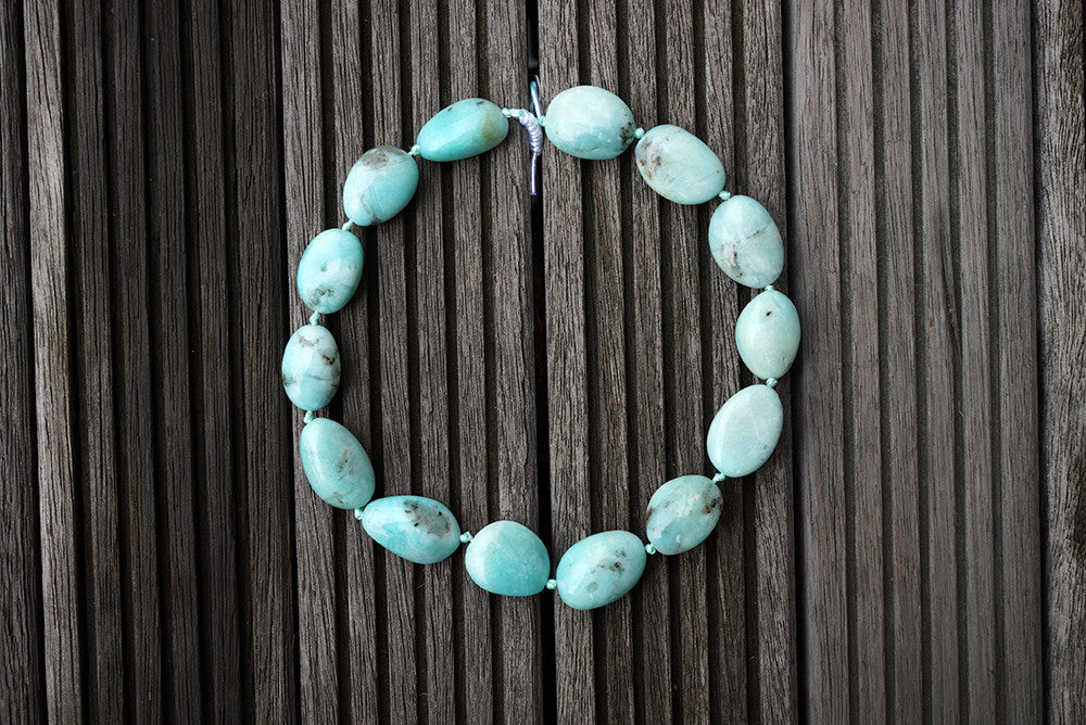 It is named appropriately for the Amazon. Its soothing turquoise color energy, like waters deep and ancient, helps temper excesses, restores calm after a storm, relieves stress, and neutralizes extremes. It is a Stone of Harmony, both within the self and among people.