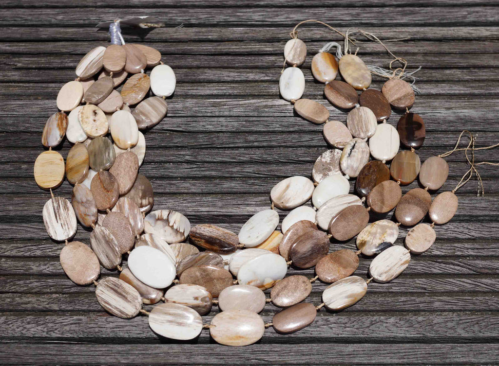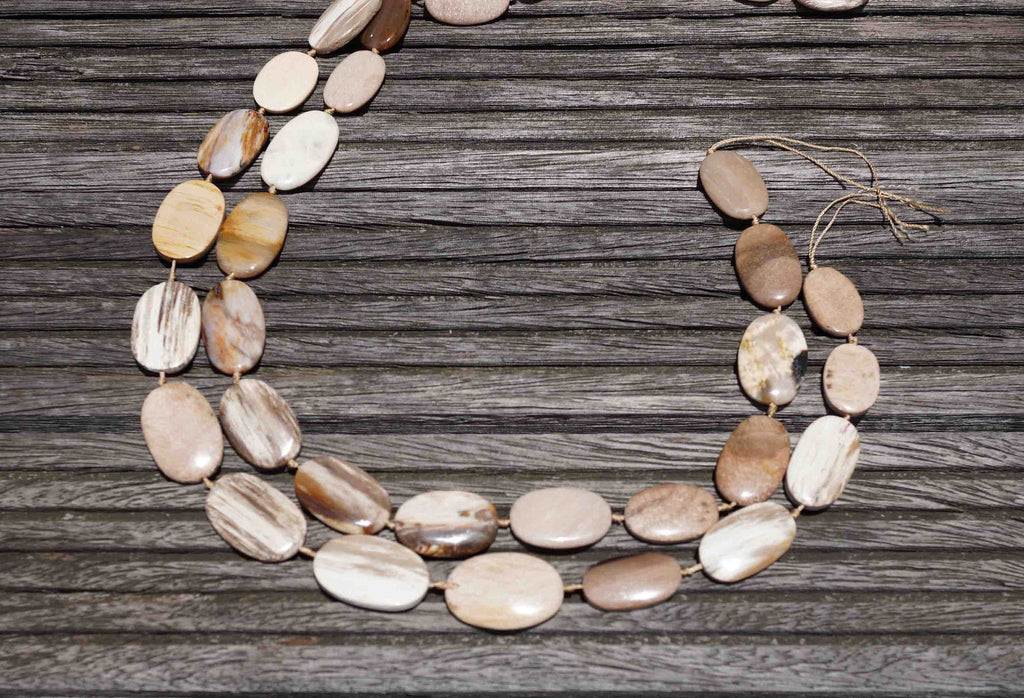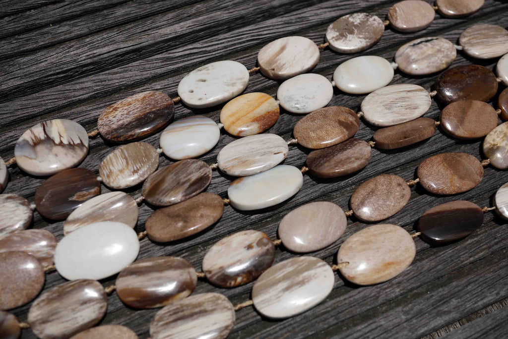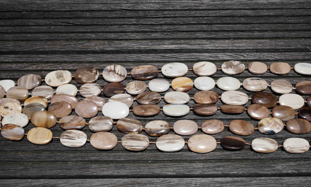 Petrified Wood 15-22mm oval flat beads (ETB00530)