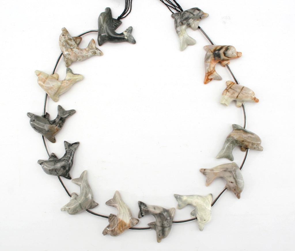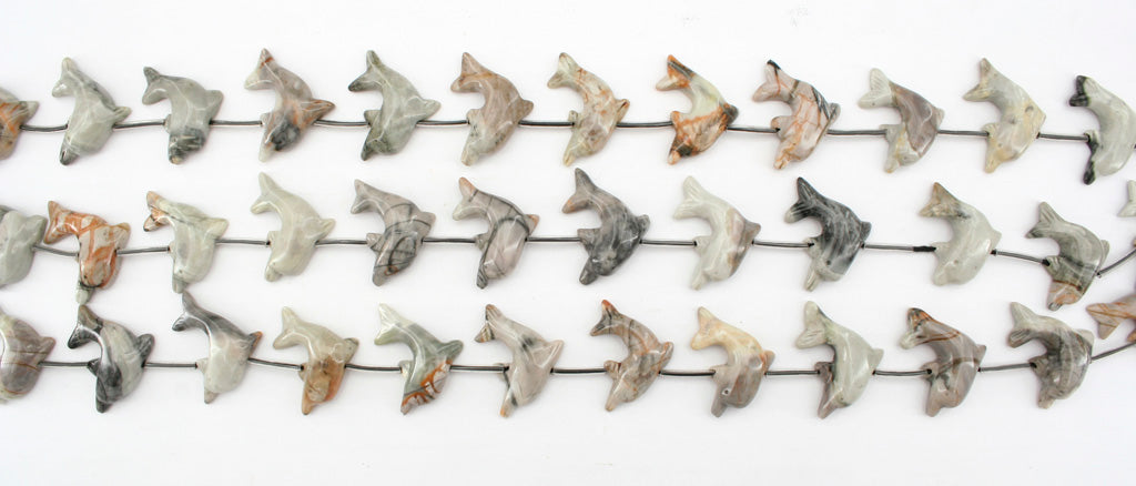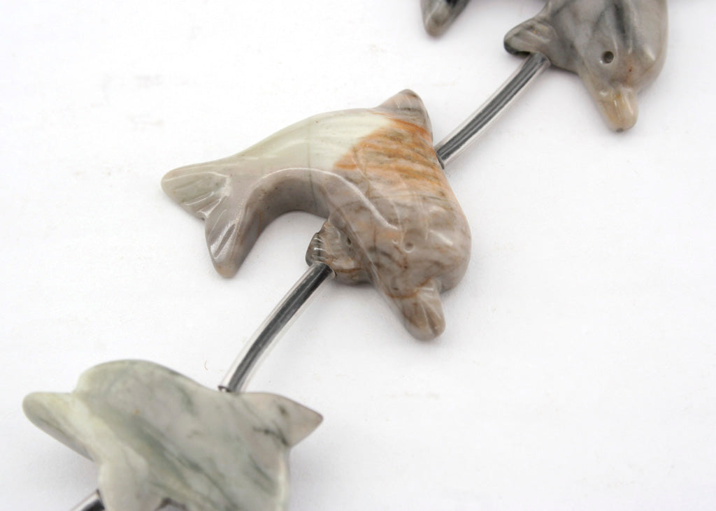 Picasso Jasper 28-31mm Dolphin beads handmade (flat base) (ETB01268)