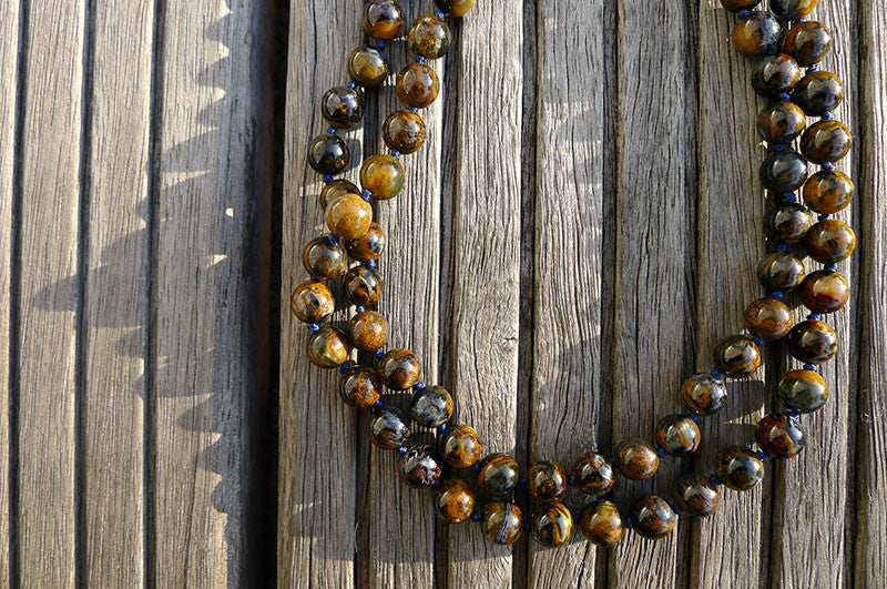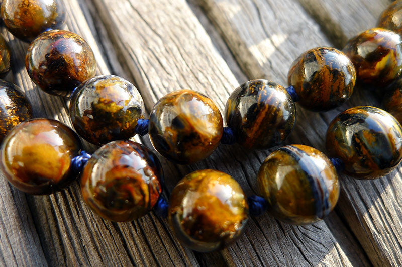 The fibrous structure in pietersite has been folded, stressed, even fractured and/or broken apart via the Earth's geologic processes. The fibrous materials have then been reformed and naturally recemented together by quartz. Stones and crystals that go through this process are referred to as brecciated, creating a finished product with multiple colors, hues and superb chatoyancy. While pietersite has the lovely chatoyancy of tiger eye, it is not found in continuously structured bands. Rather it can form in swirls, swathes and fibrous (sometimes linear) segments. Thus the structure of the fibrous streaks in pietersite may appear rather chaotic, and can flow or exist in many directions side-by-side like bold paint strokes.