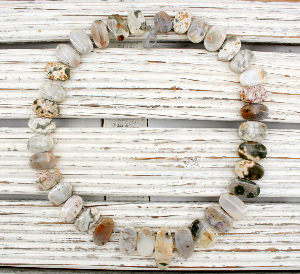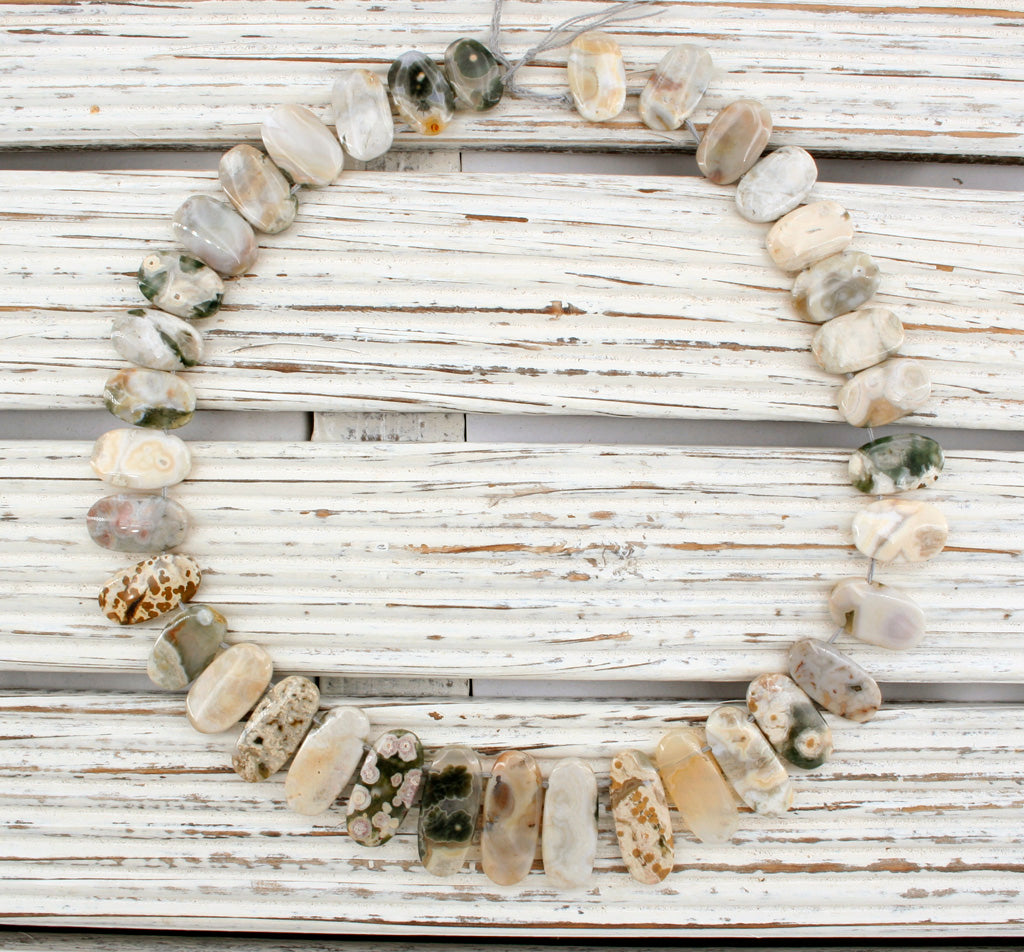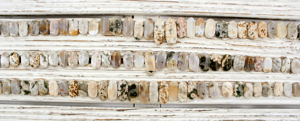 It (also called Orbicular Jasper) is an unusual jasper found only at a remote location on the coast of Madagascar that can only be mined at low tide! The colors vary widely - including white, green, pink, red, black, blue. The wild polka dots, wavy lines, multi colored floret patterns of Ocean Jasper make this a gorgeous and exciting stone.