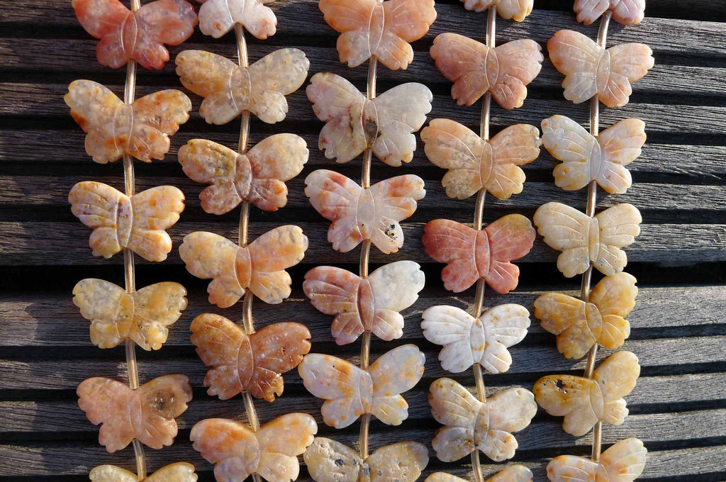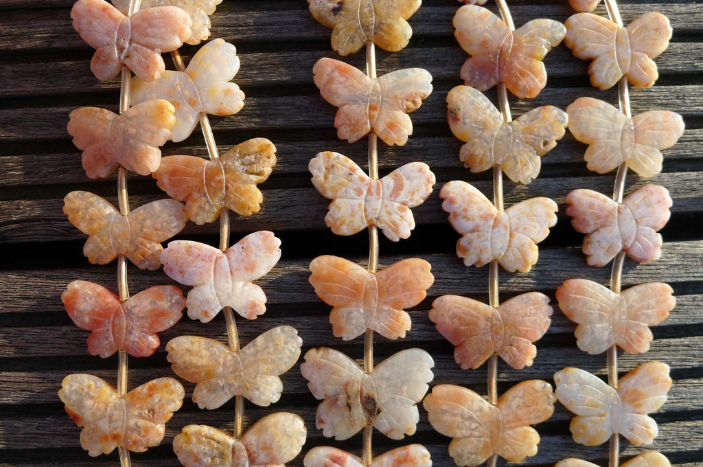 Pink Agate 25-31mm butterflies beads (ETB00315)
