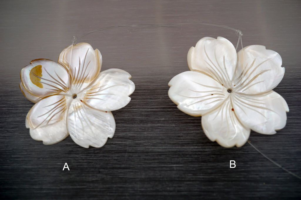 Pink Mother of Pearl / MOP 42-46mm handmade flower pendant (ETP00311)