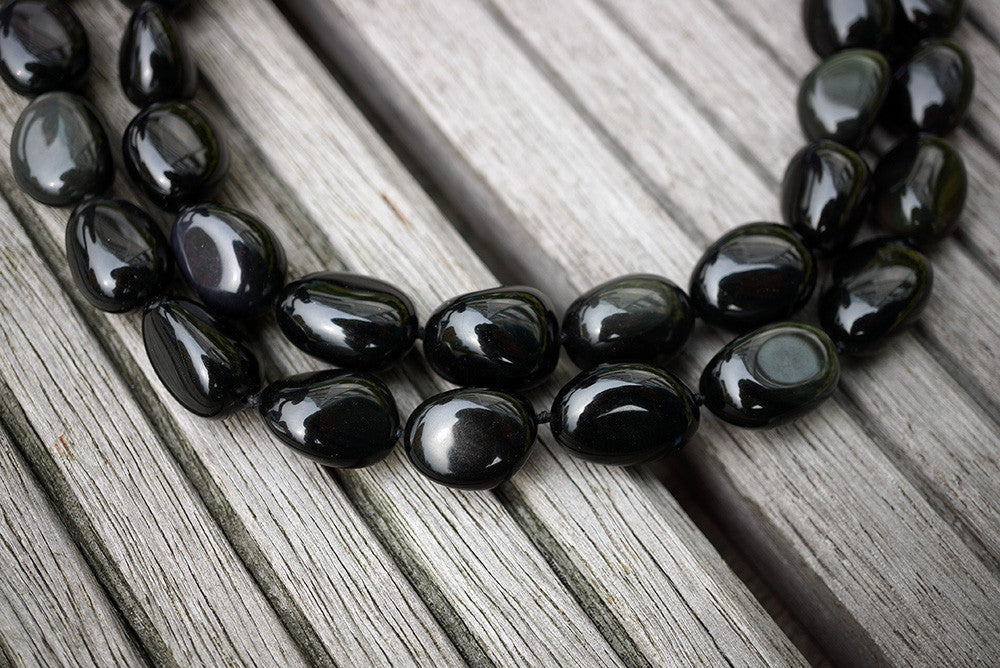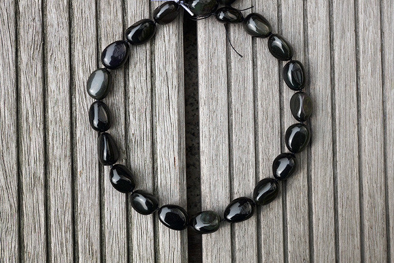 Rainbow Obsidian is black obsidian that, when polished and exposed to a strong light, shows bands of rainbow colours.  Rainbow Obsidian is said to be the stone used by Nostradamus to foresee future events.