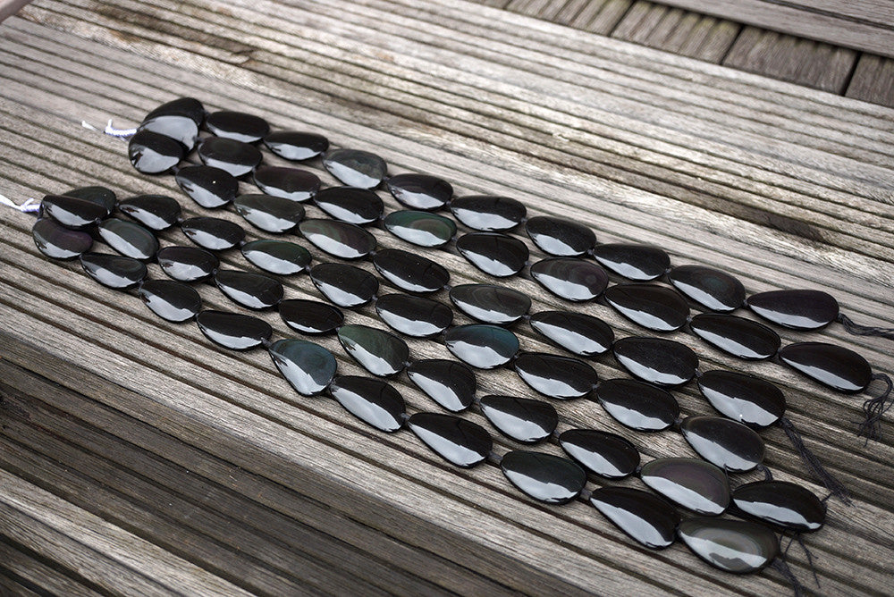 Rainbow Obsidian is black obsidian that, when polished and exposed to a strong light, shows bands of rainbow colours. Rainbow Obsidian is said to be the stone used by Nostradamus to foresee future events.