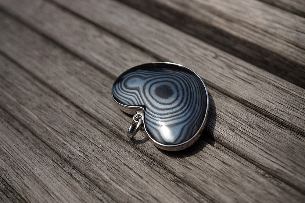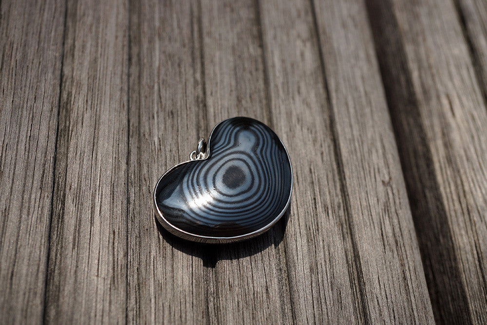Rare and elegant Mexican Psilomelane heart shape pendant with silver (ETP00229)