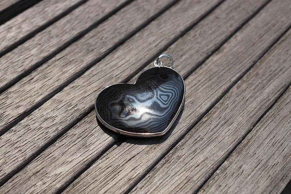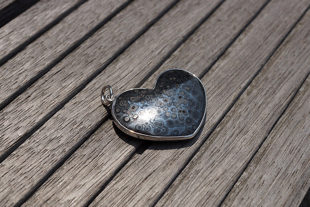 Rare and elegant Mexican Psilomelane heart shape pendant with silver (ETP00230)
