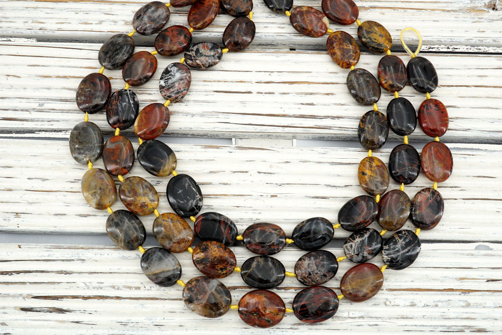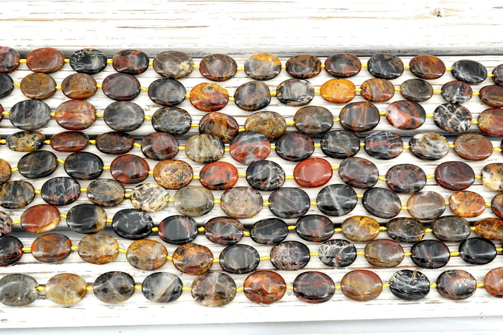 Beautifully patterned jasper. This new find occurs in the Pilbara region of Western Australia. This gorgeous Jackson Pollock style Jasper has poles of streaky colours layered across each other creating a hatching effect across its surface. With colours in shades of grey, beige, red, mustard, dark brown with some black and white, usually coloured by iron oxide.