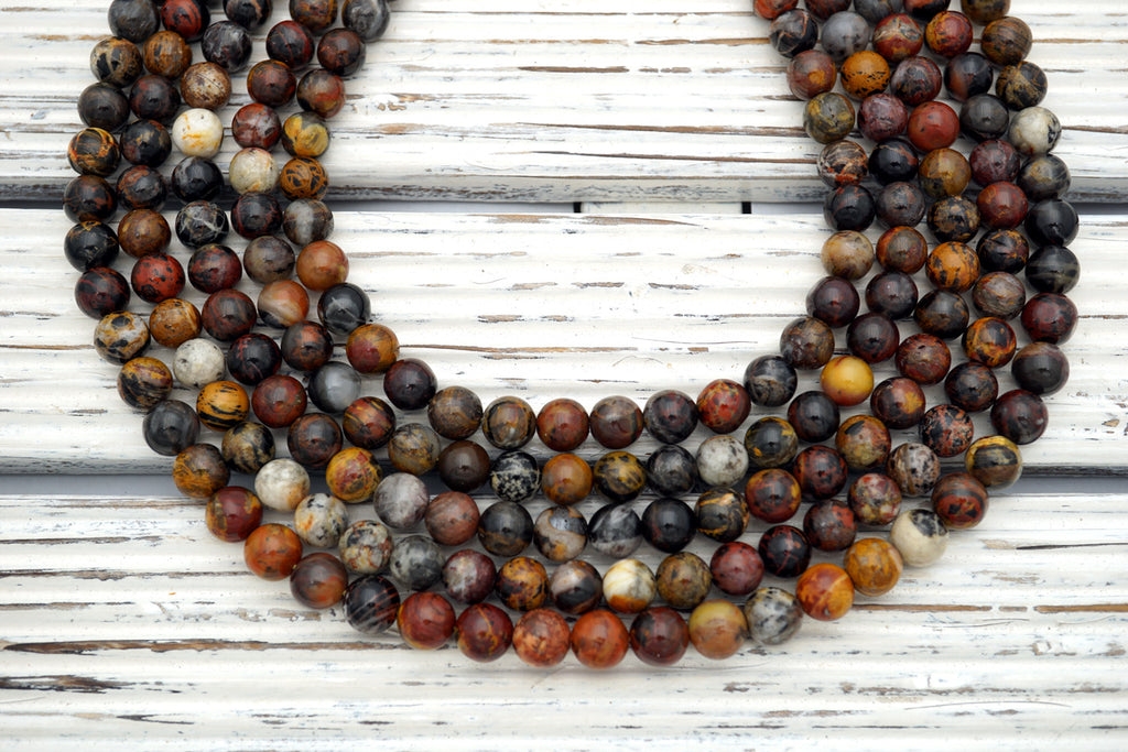 Beautifully patterned jasper. This new find occurs in the Pilbara region of Western Australia. This gorgeous Jackson Pollock style Jasper has poles of streaky colours layered across each other creating a hatching effect across its surface. With colours in shades of grey, beige, red, mustard, dark brown with some black and white, usually coloured by iron oxide.