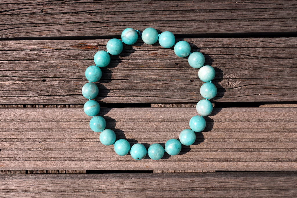 It is named appropriately for the Amazon. Its soothing turquoise color energy, like waters deep and ancient, helps temper excesses, restores calm after a storm, relieves stress, and neutralizes extremes. It is a Stone of Harmony, both within the self and among people.