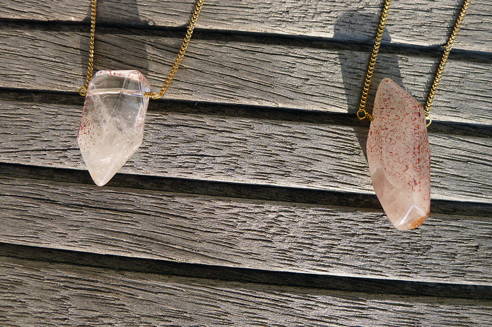Lepidocrocite quartz faceted shaped with metal chain (ETO00029)
