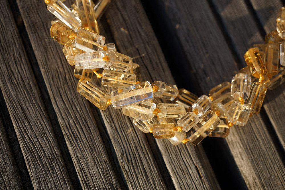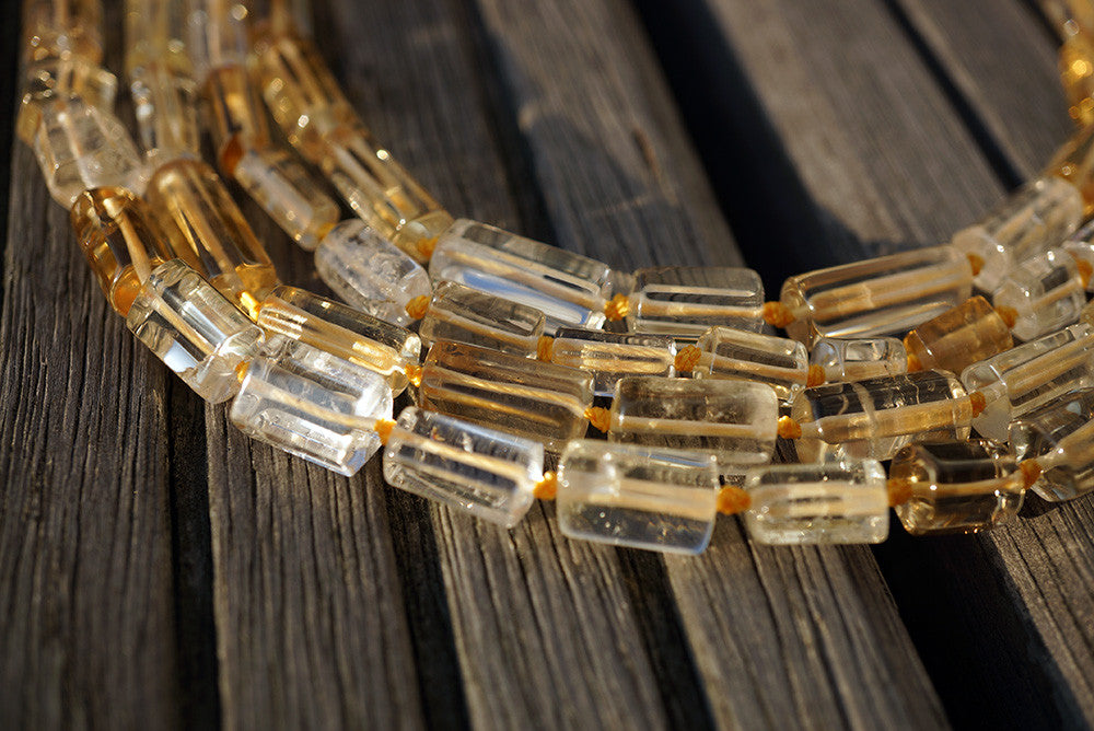 Natural Citrine Quartz (Brazil) 6-9mm hexagon cylinders beads (ETB00661)